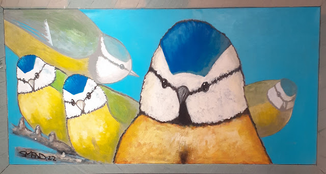 Mésanges bleues – cyanistes caeruleus – en figuration libre